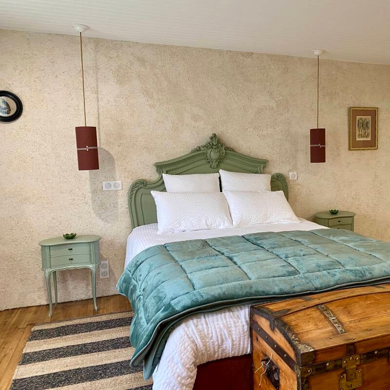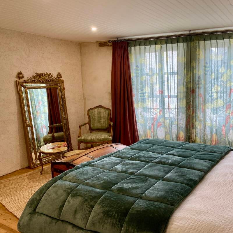 Je vous propose 2 chambres qui ont chacune une identité forte. De part mon métier de tapissière d'ameublement et de créatrice d'abat-jour, j'ai la chance de vous proposer un environnement riche en décor tissu. La maison et ses 2 chambres d'hôtes (CH8 et CH9) vous transporteront dans mon univers qui ne vous laissera pas indifférent.